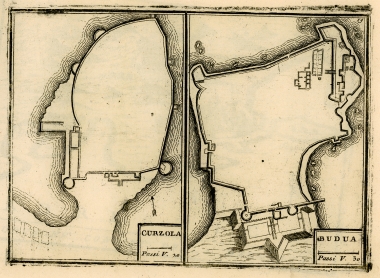 Κατόψεις των φρουρίων της νήσου Κόρτσουλα στην Κροατία και της πόλης Μπούντβα στο σημερινό Μαυροβούνιο.