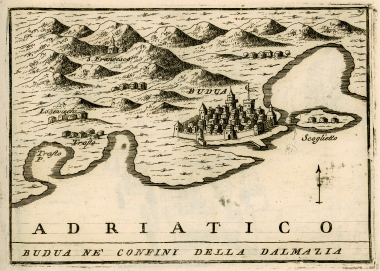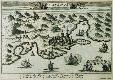 Χάρτης της πόλης Μπούντβα στο σημερινό Μαυροβούνιο.