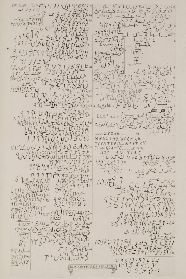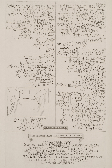 Επιγραφές από το όρος Σινά. Επιγραφή από τη βάση ενός από τα κολοσσιαία αγάλματα του Αμένωφι Γ΄ (Κολοσσοί του Μέμνονα) στις Θήβες της Αιγύπτου.