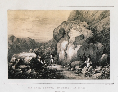 Ο βράχος Μεριμπάχ στο όρος Χωρήβ (πιθανότατα κορυφή του όρου Σινά). Σύμφωνα με το βιβλίο της Εξόδου, ο Μωυσής χτύπησε τον βράχο και ανέβλυσε νερό.