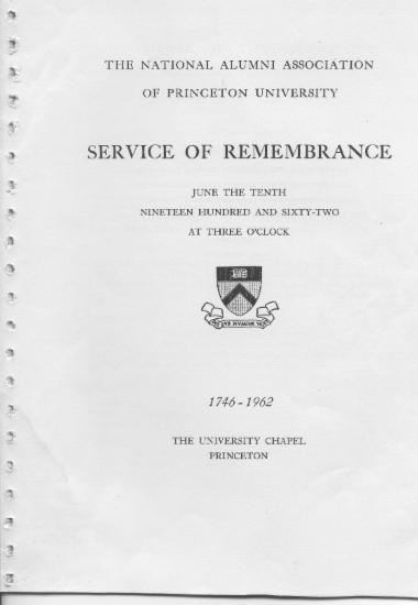 Scrapbook memorial service of rememberance of Princeton University for their alumni (p.5) June 10, 1962