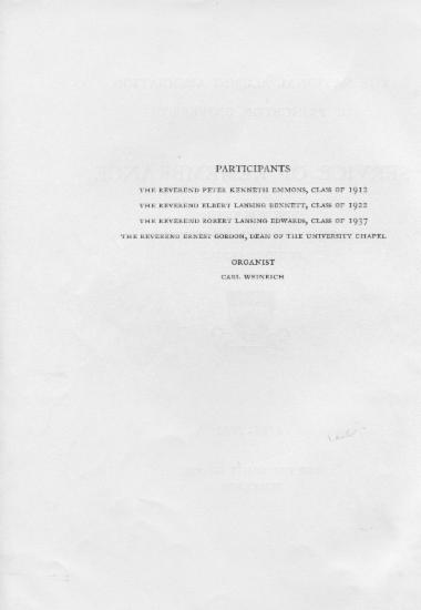 Scrapbook memorial service of rememberance of Princeton University for their alumni (p.3) June 10, 1962