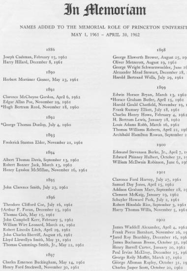 Scrapbook memorial service of rememberance of Princeton University for their alumni (p.12) June 10, 1962