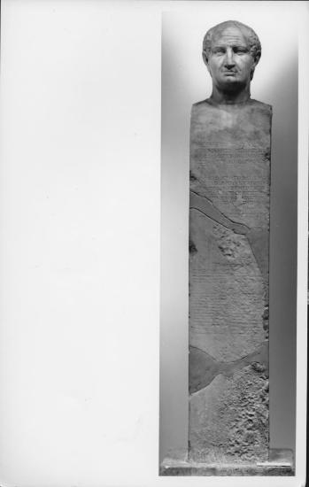 Εικονιστική κεφαλή κοσμητού με τμήμα ερμαϊκής στήλης