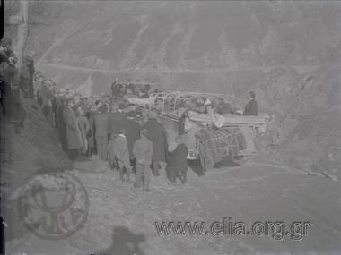 Περιοχή Κερασιά. Αναχώρηση από την Κλεισούρα, φορτηγά και πλήθος.