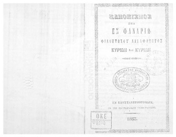 Πρακτικά της Β' Γενικής Συνελεύσεως της εν Φαναρίω Φιλοπτώχου Αδελφότητος κατά την 5 Απριλίου 1864