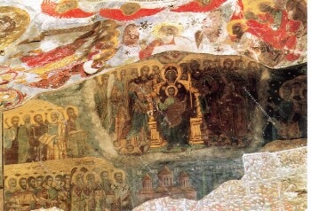 Sumela Monastery Trabzon Turkey, Frescoes from Interior of Rock Church Virgin Enthroned, Saints and Bishops