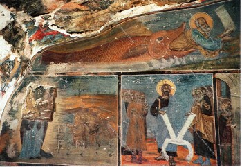 Sumela Monastery Trabzon Turkey, Frescoes from Interior of Rock Church Jonah, Christ and Apostles