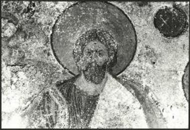 Παλιόχωρα, ναός Αγίου Πέτρου. Λεπτομέρεια τοιχογραφίας Προφήτου Ηλία (δεύτερον στρώμα τοιχογραφιών).