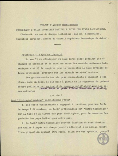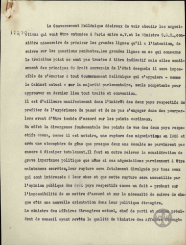 Letter from A. Michalakopoulos to the Greek Embassy in Ankara regarding France"s proposal on the signing of the Mediterranean Accord.