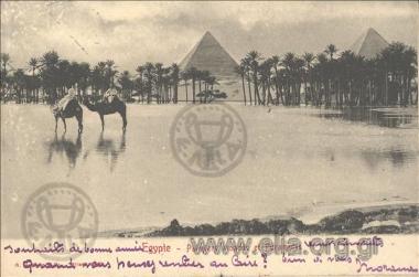 Egypte - Palmiers inondés et Pyramides.