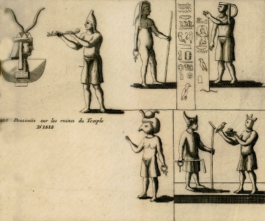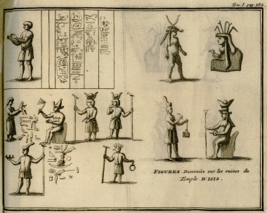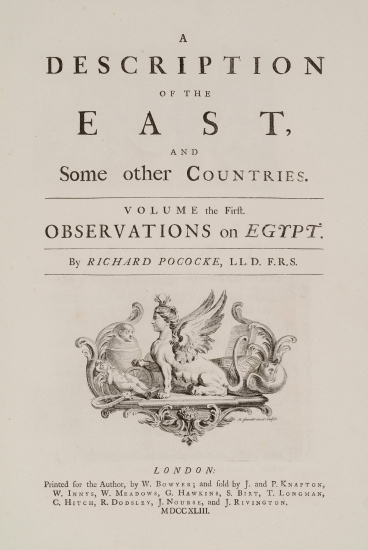 Σελίδα τίτλου α΄ τόμου. Φανταστική σύνθεση με αιγυπτιακές αρχαιότητες.