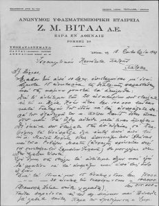 Letter to the Director of the Political Office of Venizelos regarding the absence of an Archrabbi in the Jewish Community of Athens.
