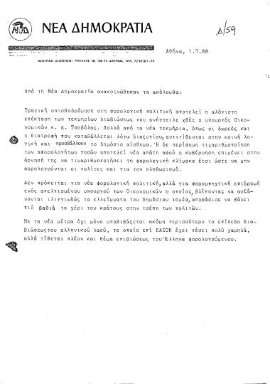 Δελτίο τύπου ΝΔ σχετικά με τη φορολογική πολιτική και την επέκταση των τεκμηρίων διαβίωσης