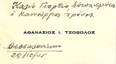 Επαγγελματική κάρτα του Αθανάσιου Ι. Τζόβολου