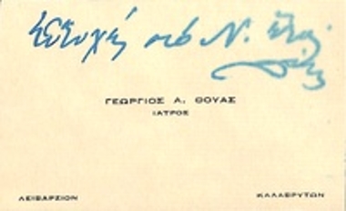 Επαγγελματική κάρτα του Γεωργίου Α. Θούα - Ιατρός