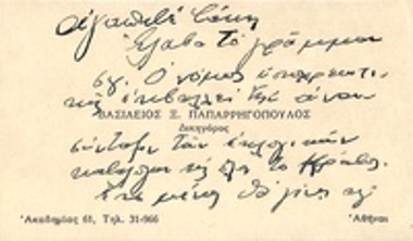 Επαγγελματική κάρτα του Βασιλείου Παπαρρηγόπουλου