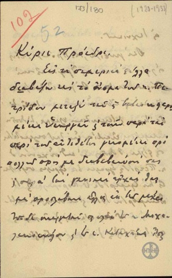Σημείωμα στο οποίο αναφέρεται ότι ο Επαμεινώνδας Πετραλιάς θα ακολουθήσει τον Πρόεδρο της Κυβέρνησης στην περιοδεία του στην Πάτρα