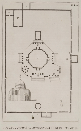 Όψη και κάτοψη του Τεμένους του Τρούλου (ή Θόλου) του Βράχου, στο Όρος του Ναού στην Ιερουσαλήμ.