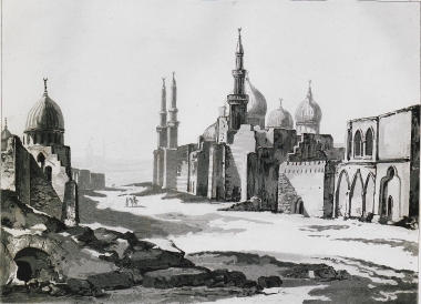 Χάρτης της ευρύτερης περιοχής του Καΐρου και της αρχαίας Μέμφιδας. Σημειώνονται επίσης τα μουσουλμανικά τεμένη και οι χριστιανικοί ναοί.