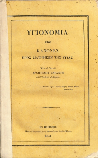 Υγιονομία: ήτοι, Κανόνες προς διατήρησιν της υγίας