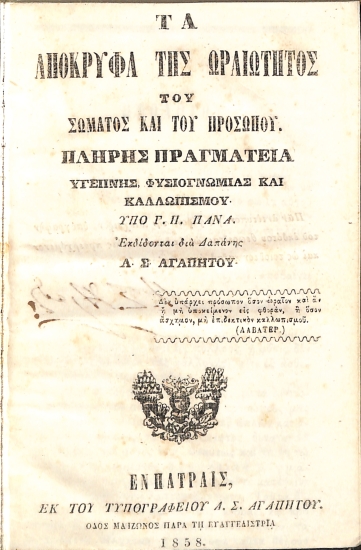 Τα Απόκρυφα της Ωραιότητος του Σώματος και του Προσώπου