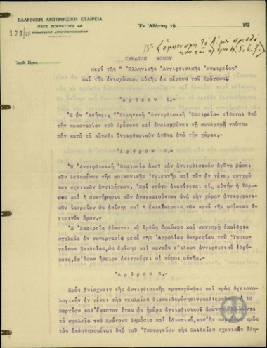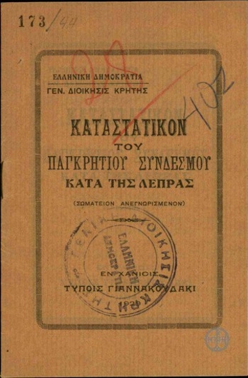 Καταστατικόν του Παγκρήτιου Συνδέσμου κατά της Λέπρας