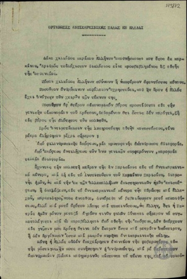 Τηλεγράφημα της Ένωσης Αναπήρων Πολέμου Ολικής Ανικανότητας προς τον Πρόεδρο της Δημοκρατίας Αλ. Ζαΐμη, τον Ε. Βενιζέλο, το Διοικητικό Συμβούλιο του Θεραπευτηρίου "Ευαγγελισμός", κλπ. για την αναστολή της μετακίνησης δύο αναπήρων από το μέρος διαμονής τους.