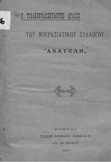 Η Τριακονταπενταετής δράση του Μικρασιατικού Συλλόγου Ανατολή