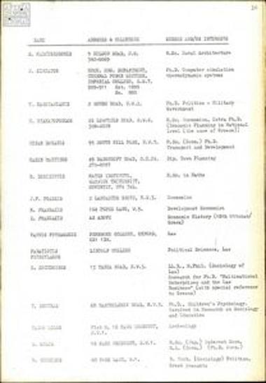 List of addresses of Greek scientists in London
