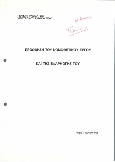 Ελλάς. Γενική Γραμματεία της Κυβέρνησης. Υπουργικό Συμβούλιο. Γραφείο Νομοθετικού Έργου, Greece. The General Secretariat of the Government. Council of Ministers. Legislative Procedure Office