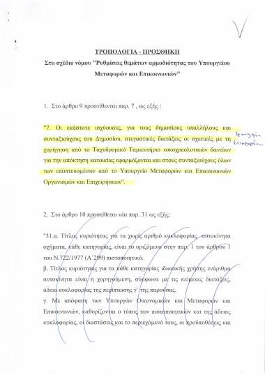 Τροπολογία-Προσθήκη στο σχέδιο νόμου: Ρυθμίσεις αρμοδιότητας του Υπουργείου Μεταφορών και Επικοινωνιών