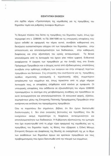 Εισηγητική έκθεση στο σχέδιο νόμου "Τροποποίηση της νομοθεσίας για τις προμήθειες του δημοσίου τομέα και ρυθμίσεις συναφών θεμάτων"
