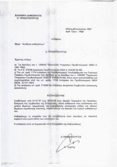 Greece. Prime Minister (1996-2004 : Simitis), Ελλάς. Πρωθυπουργός (1996-2004 : Σημίτης)