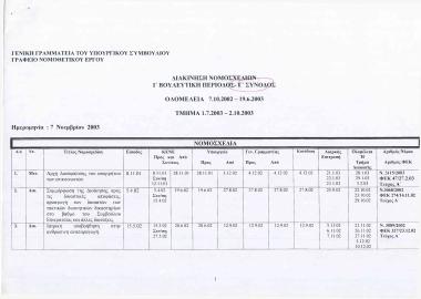 Διακίνηση νομοσχεδίων: Ι' βουλευτική περίοδος: Γ' σύνοδος: Ολομέλεια 7-10-2002/ 19-6-2003: Τμήμα 1-7-2003/ 2-10-2003