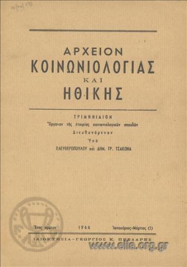 Archeion Koinoniologias kai ithikis Archive of sociology and ethics