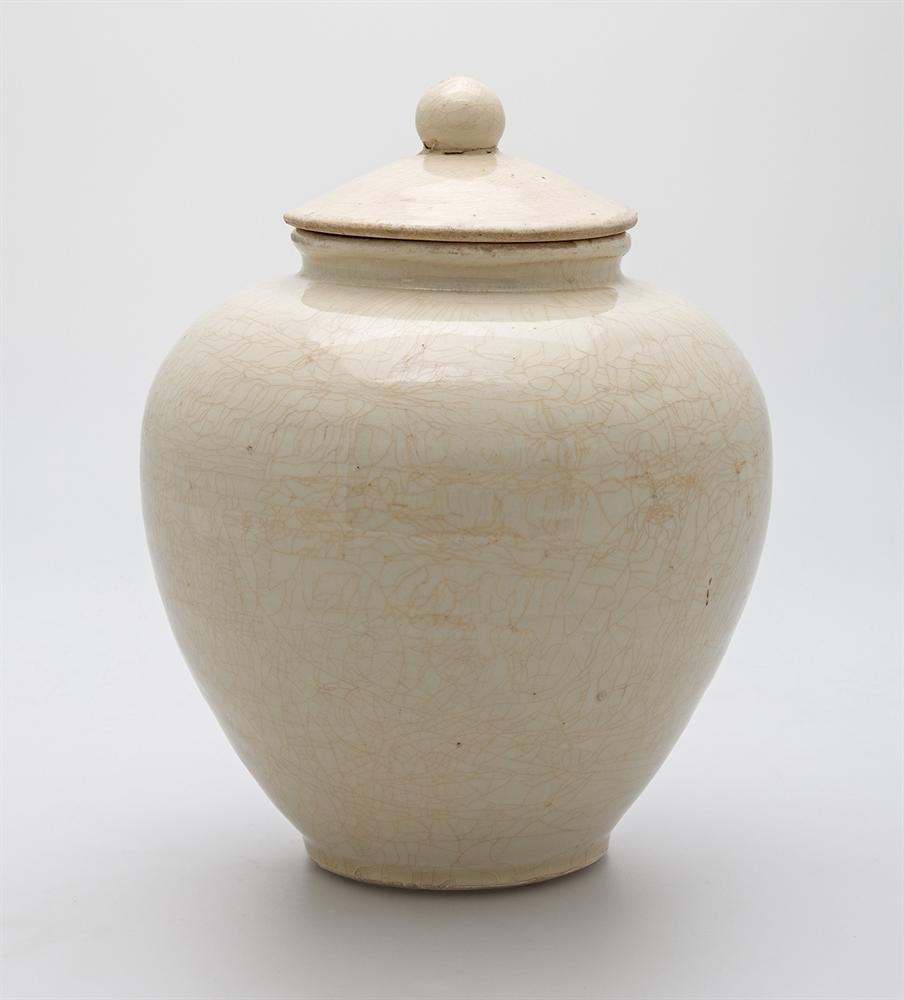 Πιθαράκι με πώμα, πηλός με λευκή εφυάλωση.
