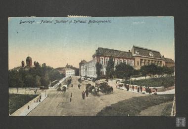 Carte postale. Bucuresti. Palatul Justitiei si Spitalul Brancovenesc