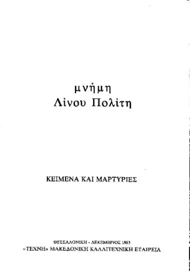 Μνήμη Λίνου Πολίτη: κείμενα και μαρτυρίες