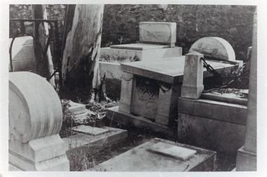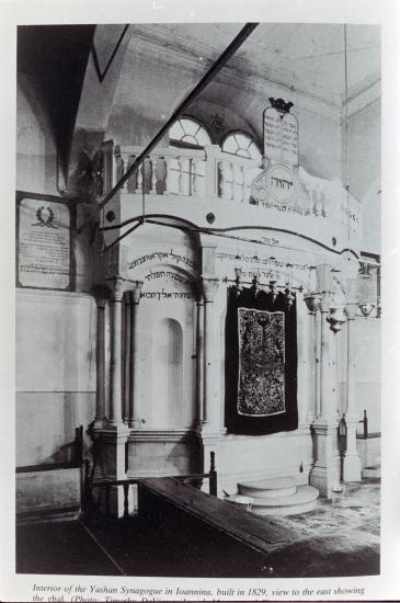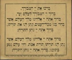 Embroidery pattern with Berahot, benedictions written on paper in Hebrew (a) and Hebrew in Greek letters (b), dedication of Emilia Balul, from Alkabetz Synagogue in Patras, built 1926.