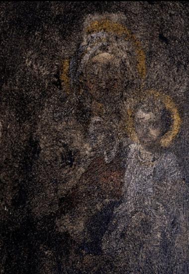 Η μορφή της Παναγίας από την παράσταση του Ευαγγελισμού στο βορειοανατολικό ημιχώνιο του καθολικού της μονής Δαφνίου.