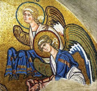 Άγγελοι από την παράσταση της Βάπτισης στο νοτιοδυτικό ημιχώνιο του καθολικού της μονής Δαφνίου.