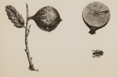 Στέλεχος φυτού του γένους Δρυς (Quercus) με φύλλα και καρπούς.