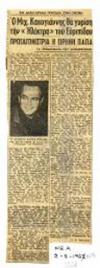 Un véritable tour de force, Michel Cacoyannis a termine en deux mois son Electre