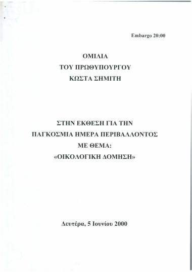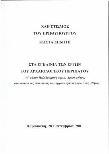 Χαιρετισμός του Πρωθυπουργού Κώστα Σημίτη στα εγκαίνια των έργων του αρχαιολογικού περιπάτου (Α' φάση: Πεζοδρόμηση της Δ. Αεροπαγίτου στο πλαίσιο της ενοποίησης των αρχαιολογικών χώρων της Αθήνας)