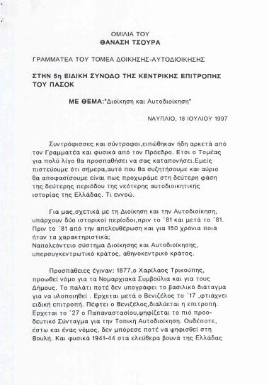 Ομιλία του Υπουργού Εθνικής Οικονομίας στη σύσκεψη των Γενικών Γραμματέων των περιφερειών (Δευτέρα, 29.6.1987)