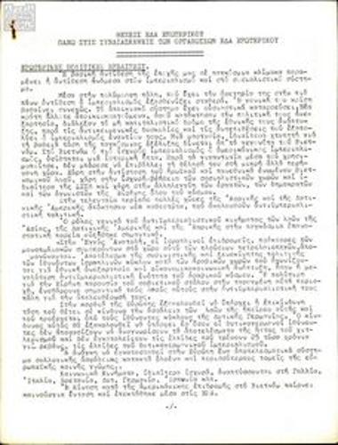 Internal document about the 10/5/1973 meeting of the Management Council of the Union of Greek Students in Paris (EPES)