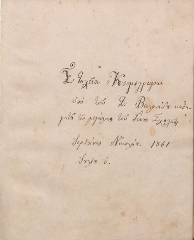 Στοιχεία Κοσμογραφίας υπό του υπό Δ. Βαλασίδου, καθηγητού της μεγάλης του Γένους Σχολής. Ιορδάνης Νικολάου. 1861