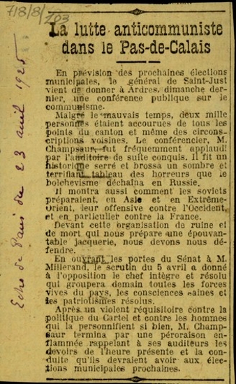 Επιστολή του Περικλή Α. Αργυρόπουλου προς τον Σ. Βενιζέλο με την οποία αντικρούει την κατηγορία του Αβέρωφ ότι έφερε τον πρωθυπουργό Πλαστήρα κατά την παραμονή του στο Παρίσι σε επαφή με κομμουνιστές έναντι μάλιστα των οποίων ανέλαβε και υποχρεώσεις.