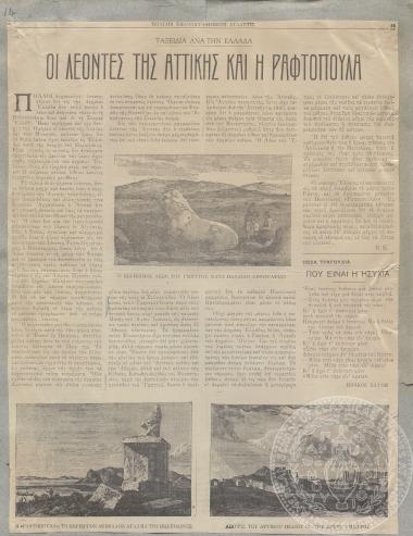 "Οι λέοντες της Αττικής και η Ραφτοπούλα", άρθρο της εφημερίδας "Ατλαντίς" στη στήλη "Ταξείδια ανά την Ελλάδα"